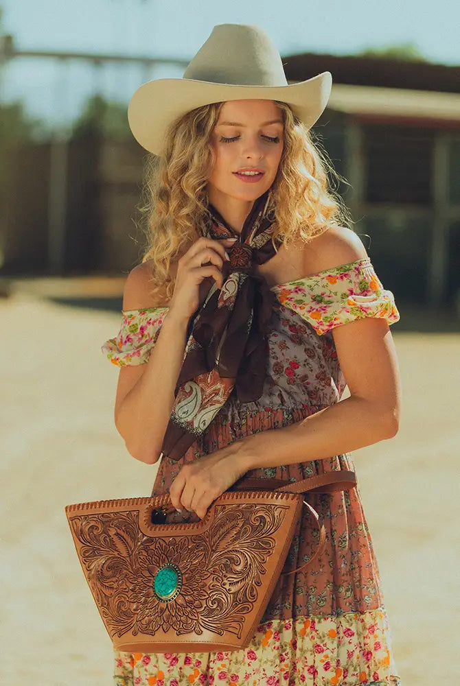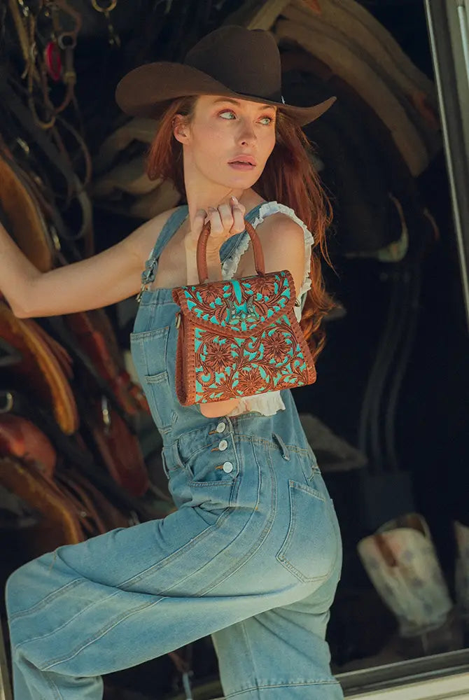 Crafted from premium top-grain leather, the MIVVA Hand-Tooled Bag features exquisite hand-tooled detailing, showcasing masterful craftsmanship. Its rich brunette hue and durable yet refined design make it a standout piece that exudes elegance and authenticity. Designed for versatility, this premium hand-tooled leather bag effortlessly blends sophistication with everyday functionality, making it a timeless essential for any occasion.